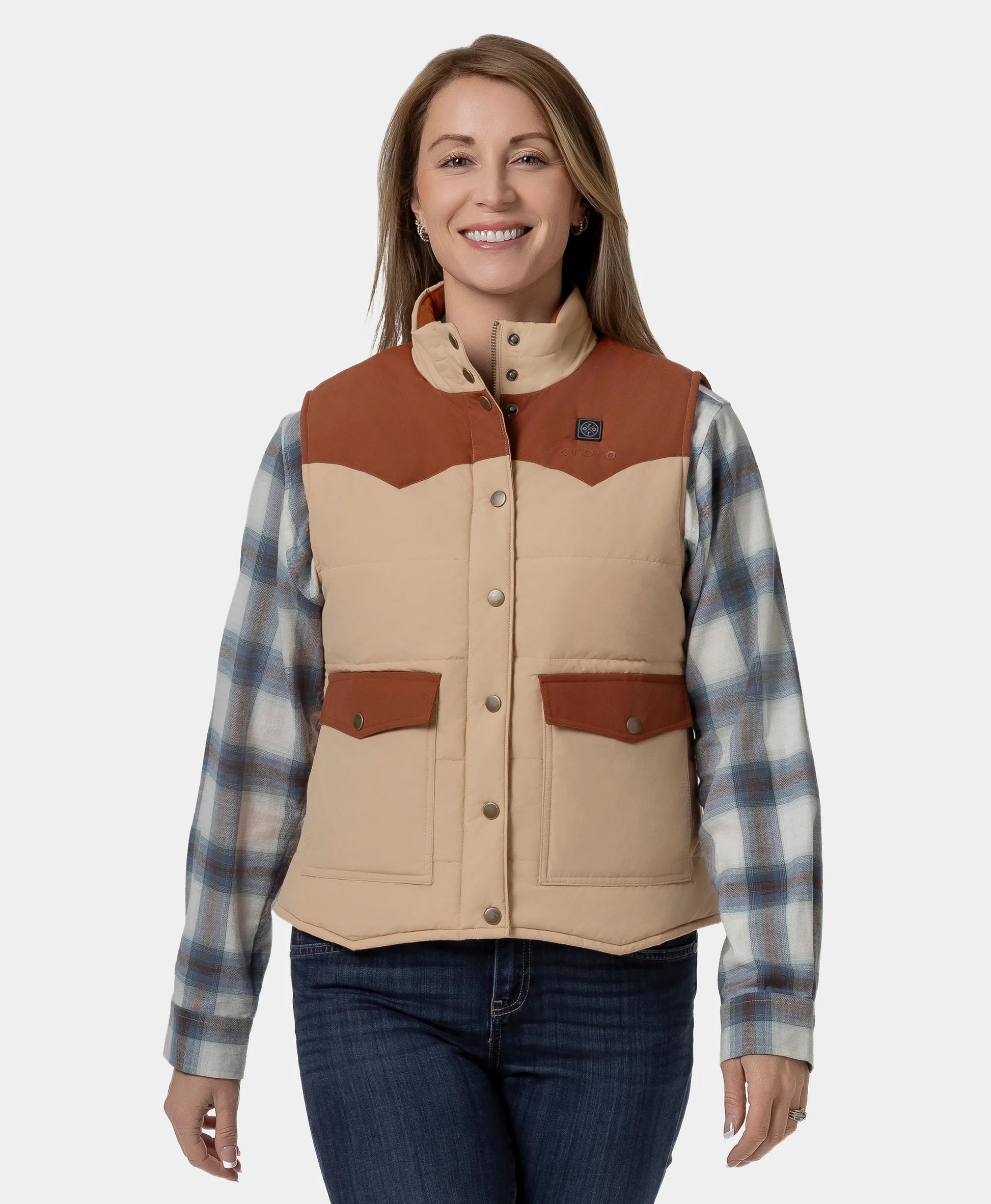 - Color blocking and V-shaped yoke design gives it a distinct Western flair.