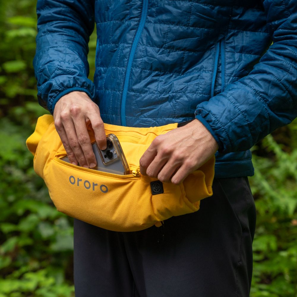- In addition to a battery pocket, two extra utility zipper pockets add quick convenient storage for your personal items, and one carabiner keeps your valuables extra secure. Change the size to fit with the easy-to-adjust waist strap.