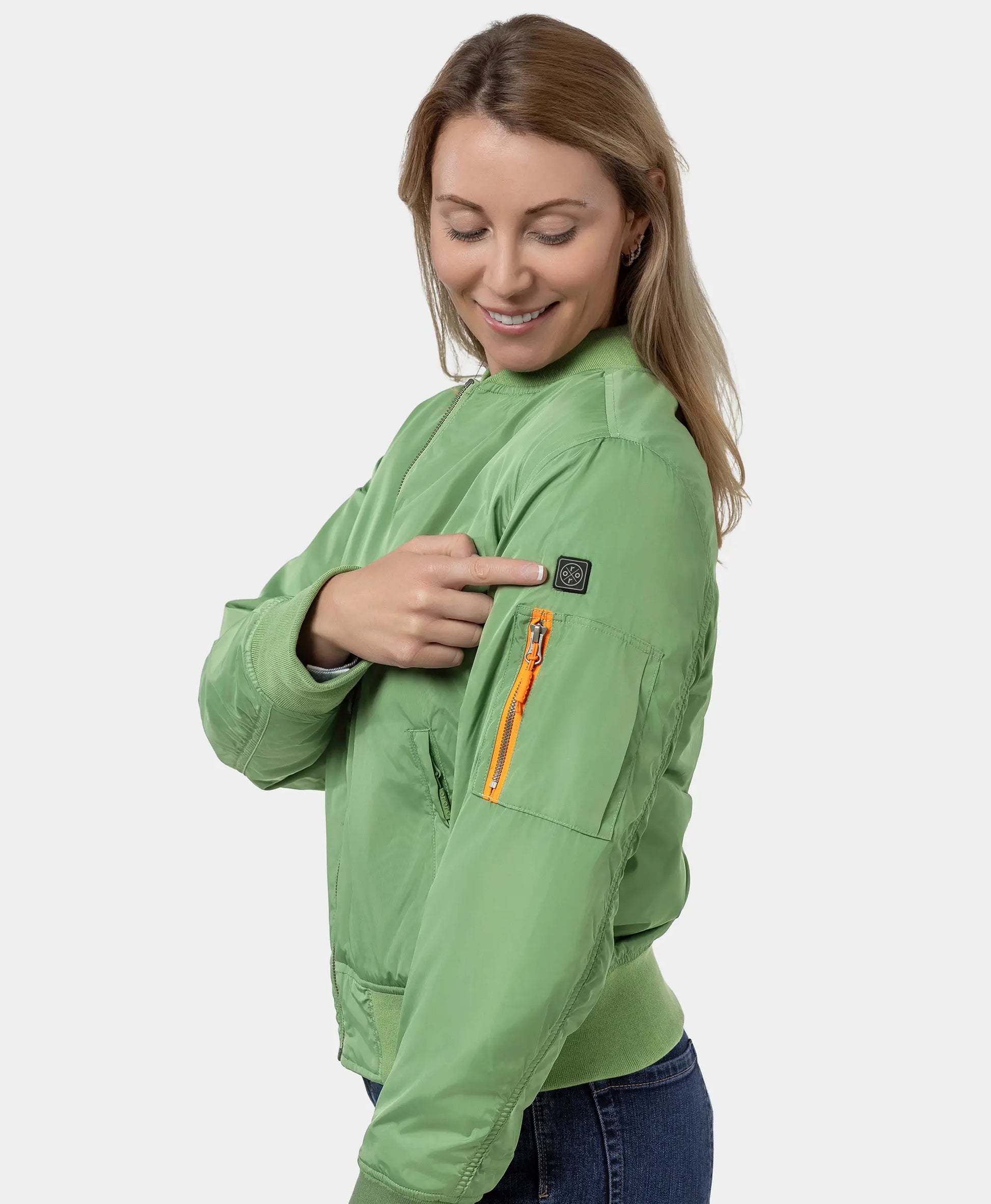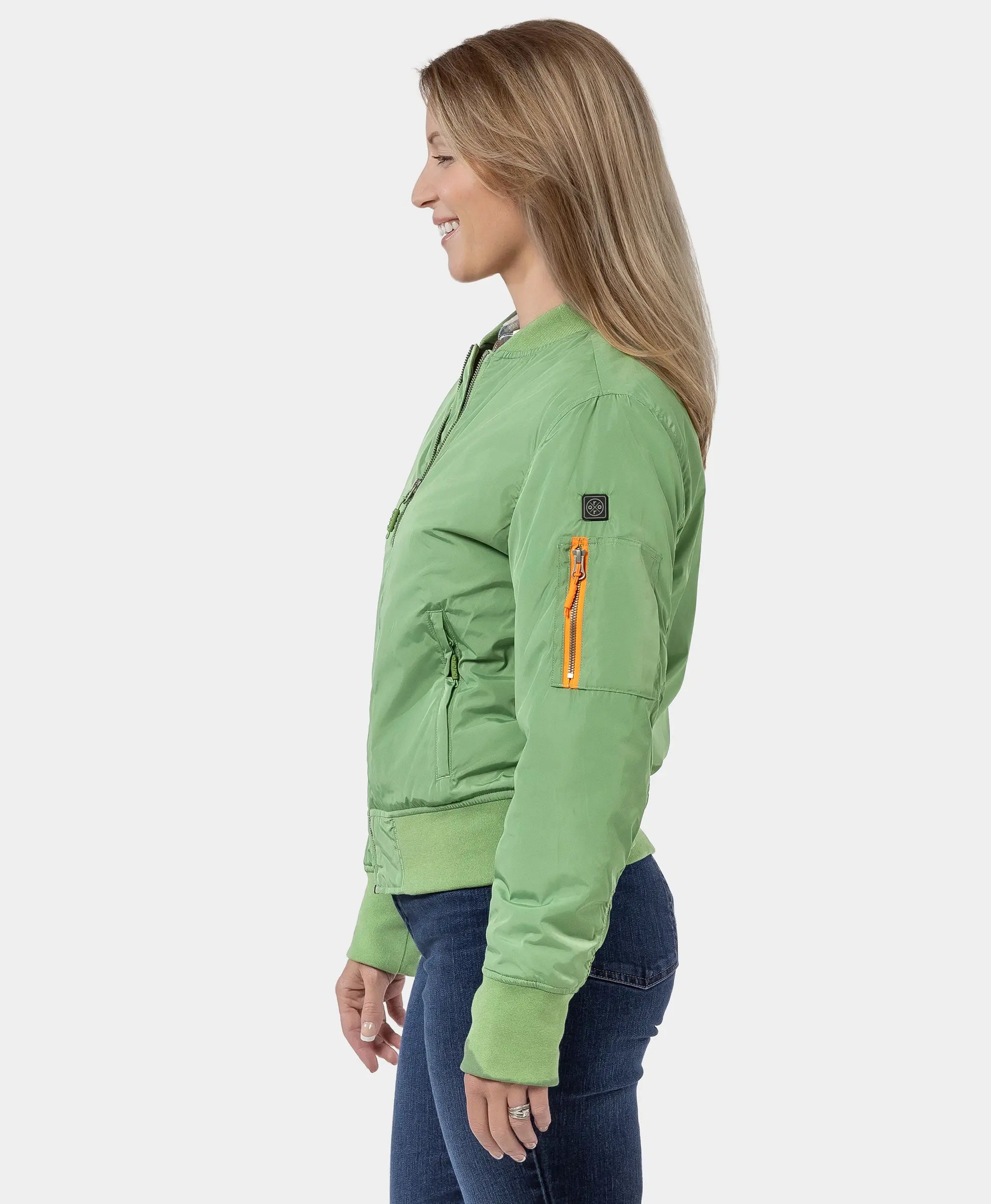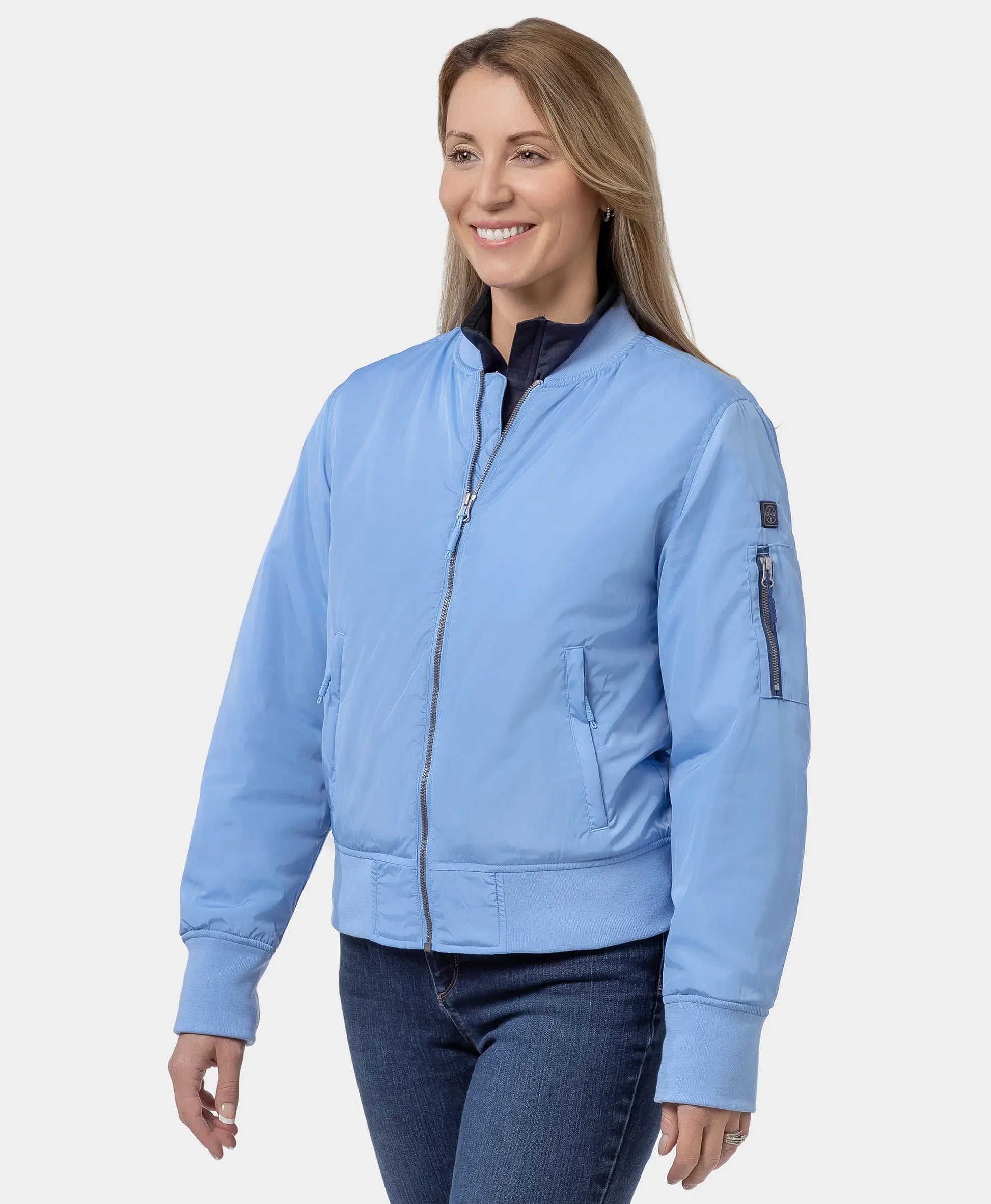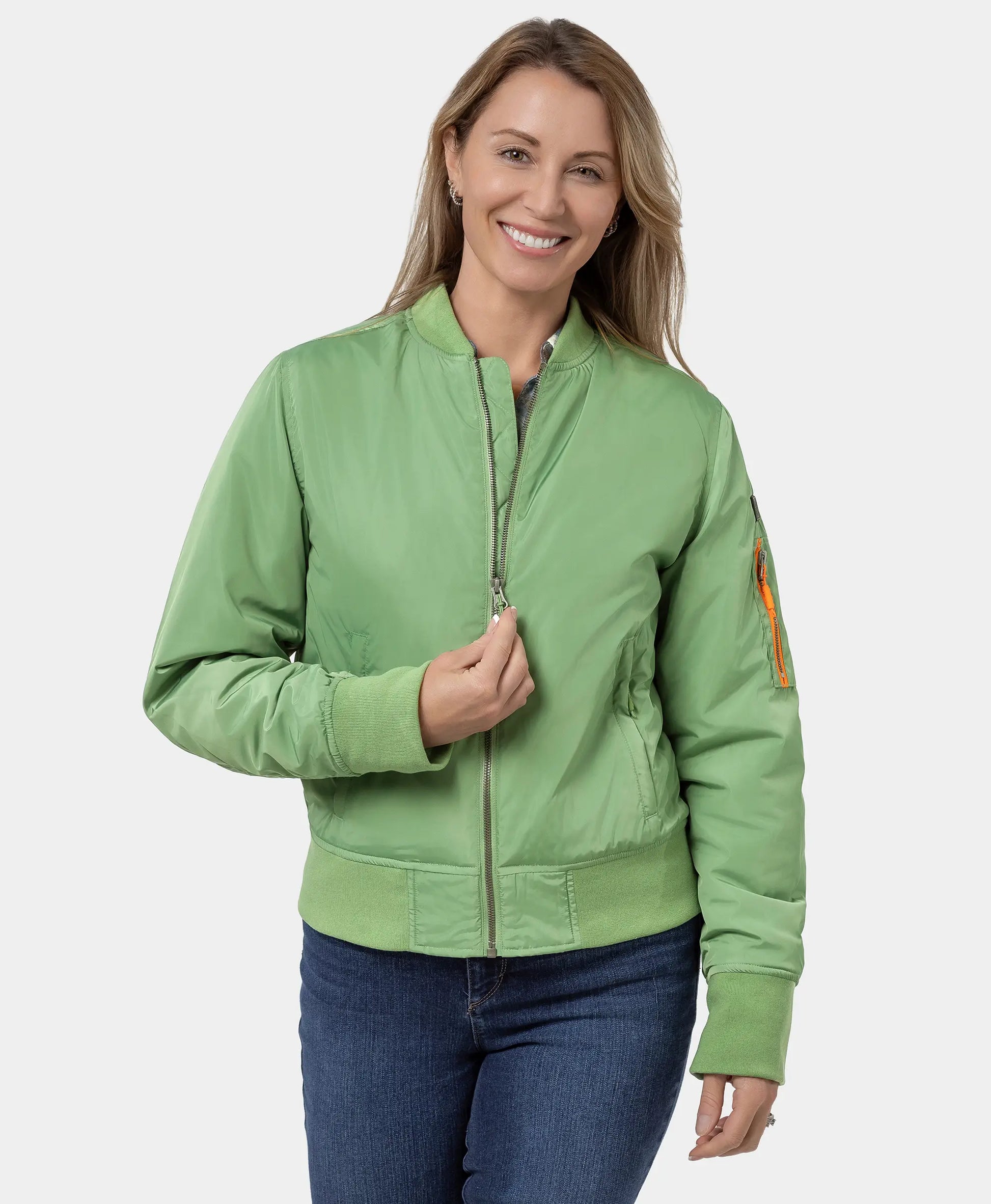 - Classic bomber elements feature ribbed collar, cuffs, and waistband for that timeless bomber jacket look.