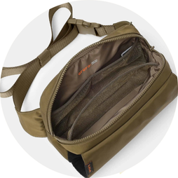- The 2.5L heated sling bag features a functional multicompartmental design and minimalist aesthetic for all-season, daily use.