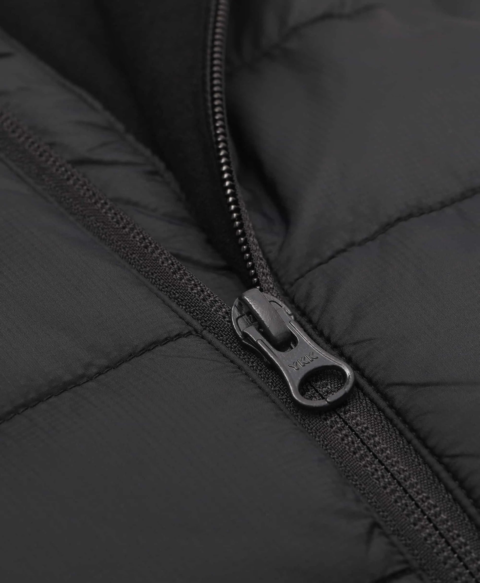 - YKK front zipper with chin guard and elastic hem for a secure, snug fit.