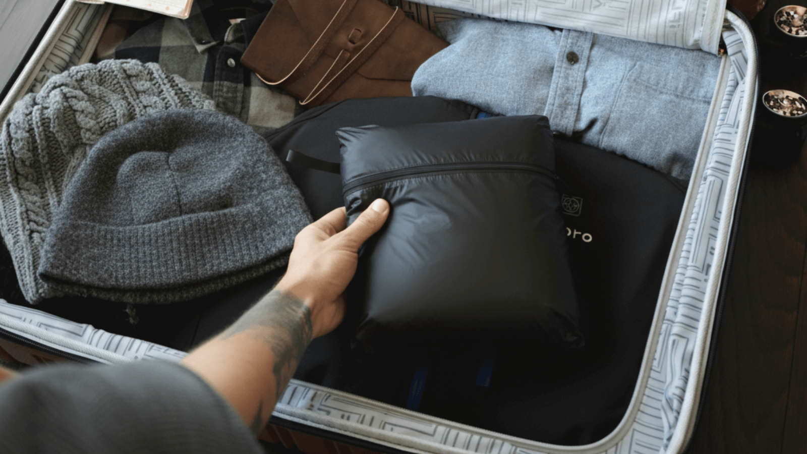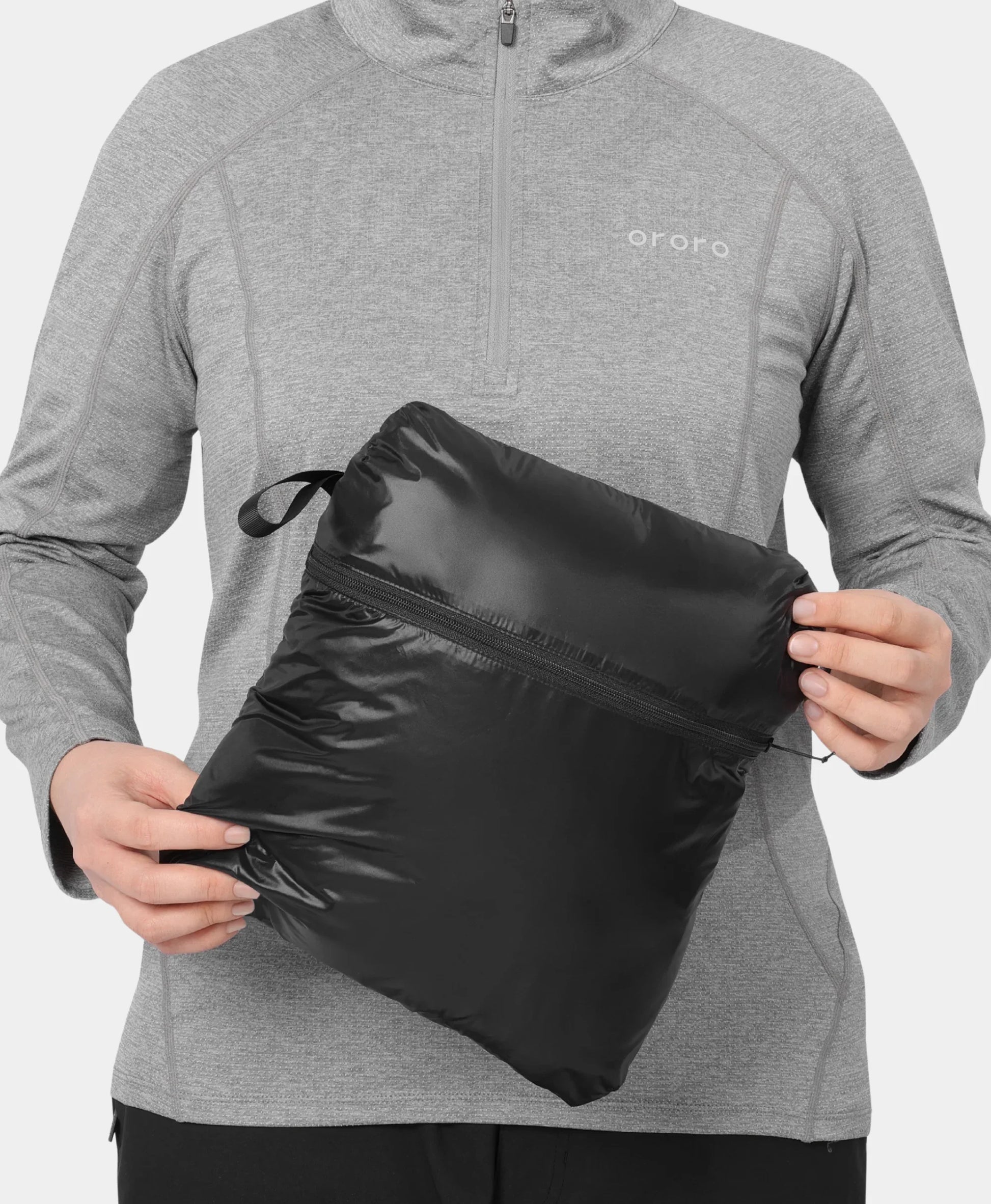 The inner pocket doubles as a storage pouch, allowing the entire jacket to be packed into a compact pillow for easy carrying. Perfect for air travel.