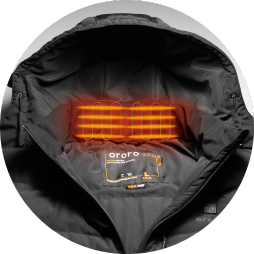 - 4 carbon fiber heating elements generate heat across core body areas (left & right pocket, collar, middle back).