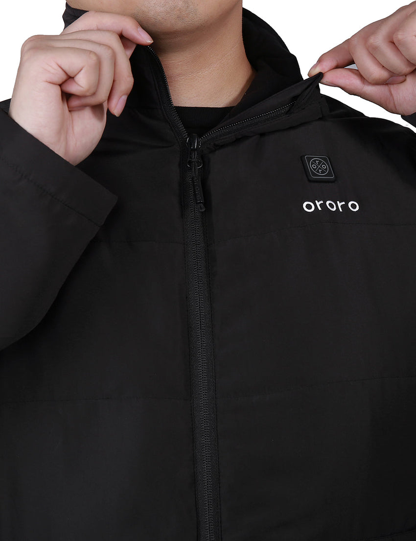 - 4 carbon fiber heating elements generate heat across core body areas (left & right chest, collar, middle back).