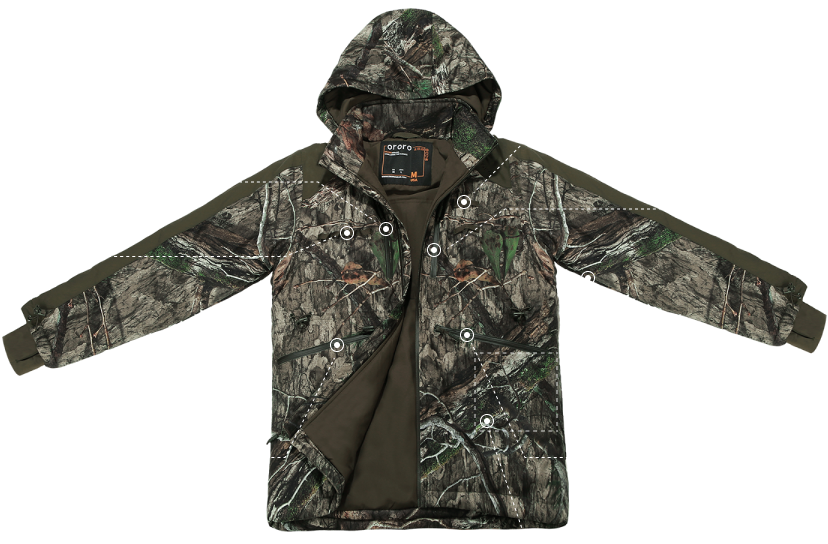 Men's Heated Hunting Jacket - Camouflage, Mossy Oak Country DNA
