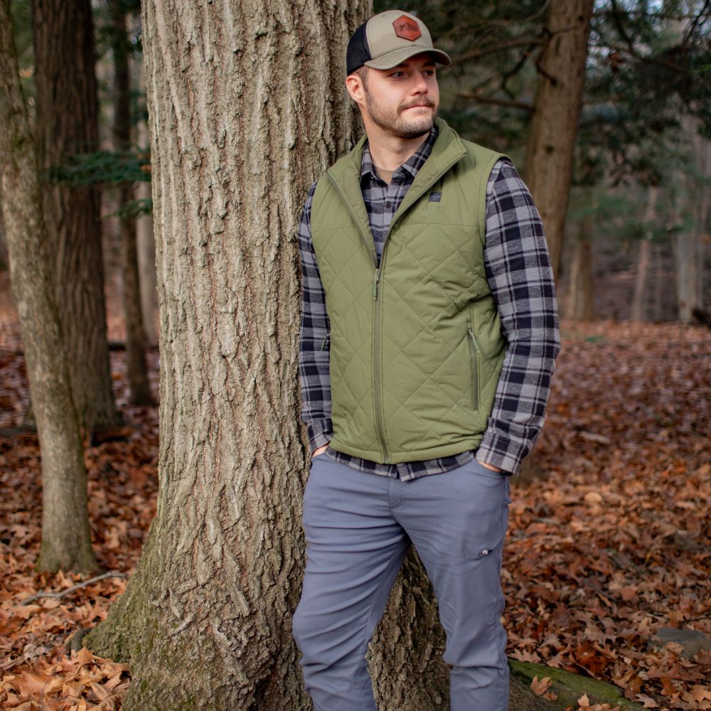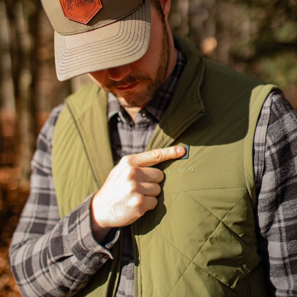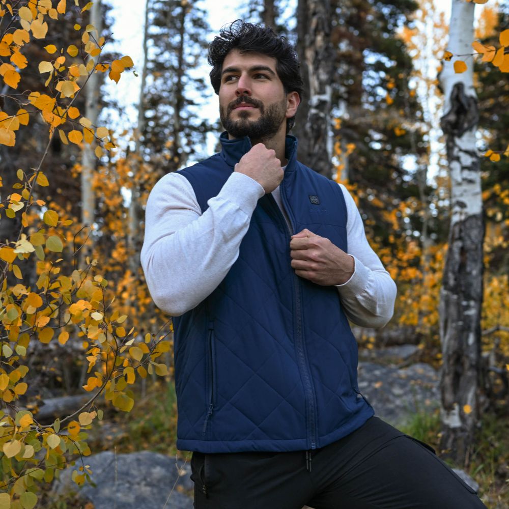 - The quilted vest weighs only 14.4oz/410g (size L), 19% lighter and 50% thinner than the Classic Heated Vest, making it the lightest vest we offer.
