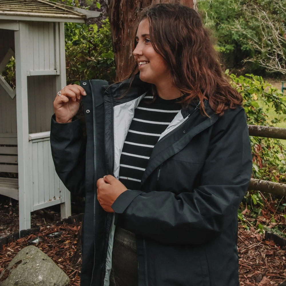 - The jacket's zip-in and snap button system at the neck and cuffs securely attaches the liner, forming a dependable 3-in-1 system.