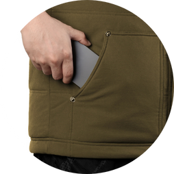 - Two handwarmer pockets and one chest pocket with snap closure for secure storage.