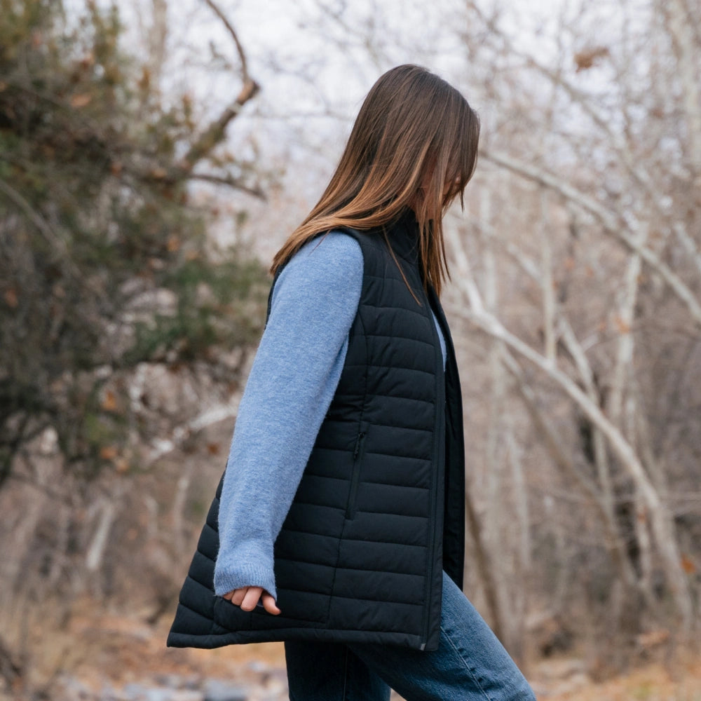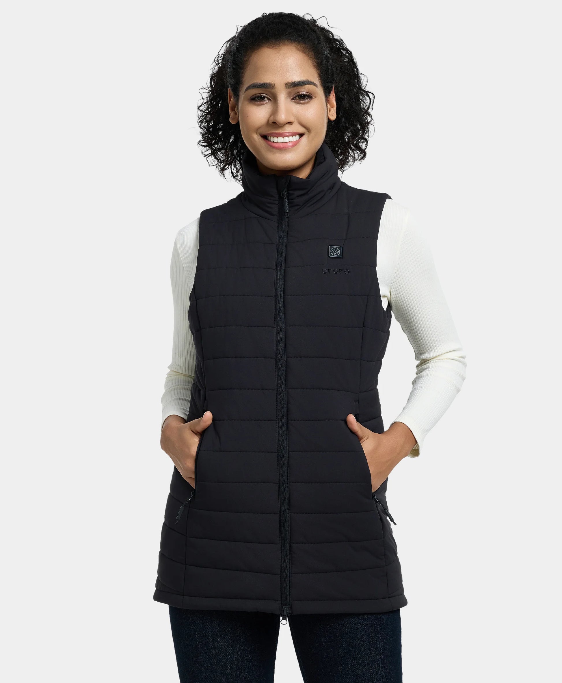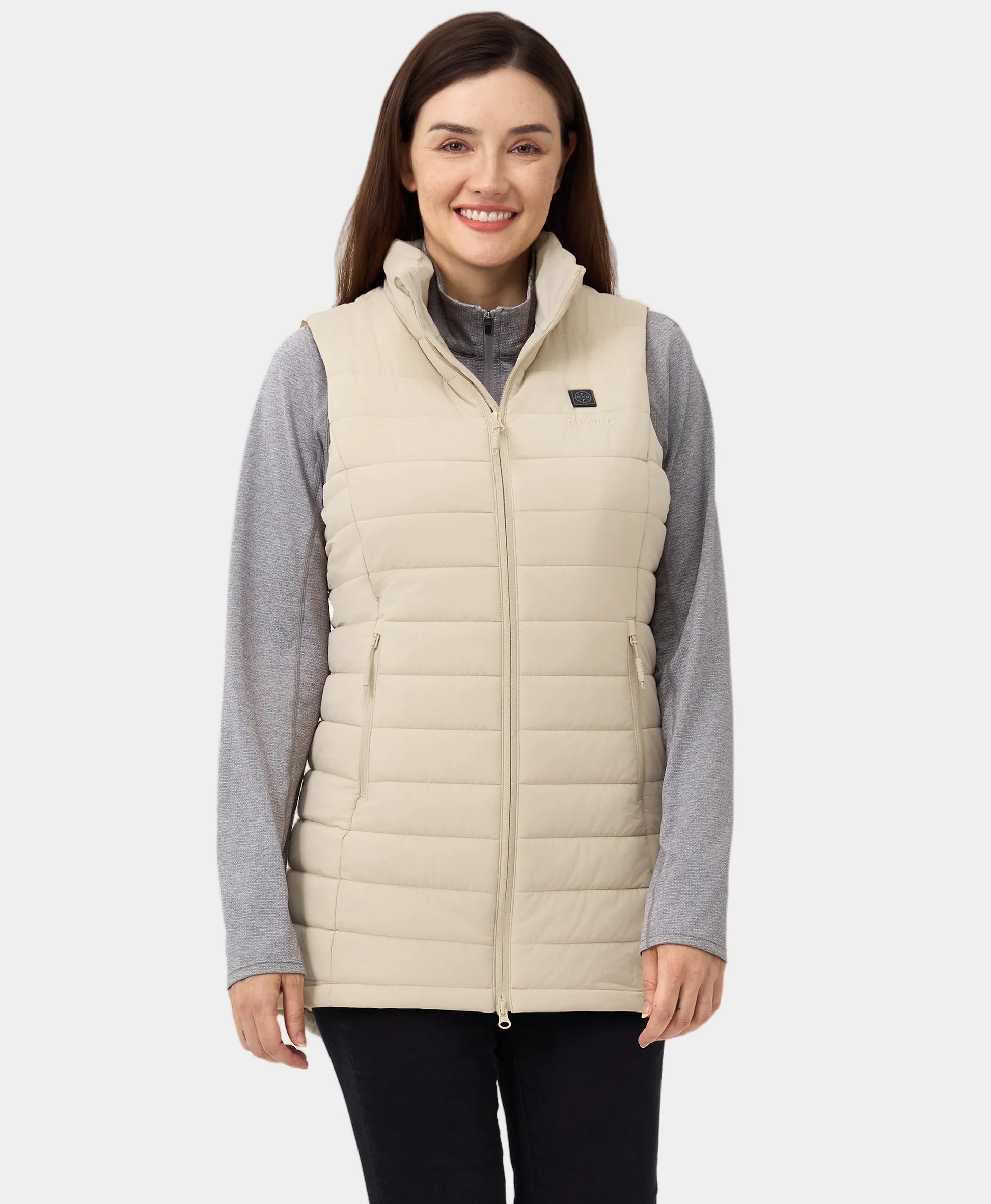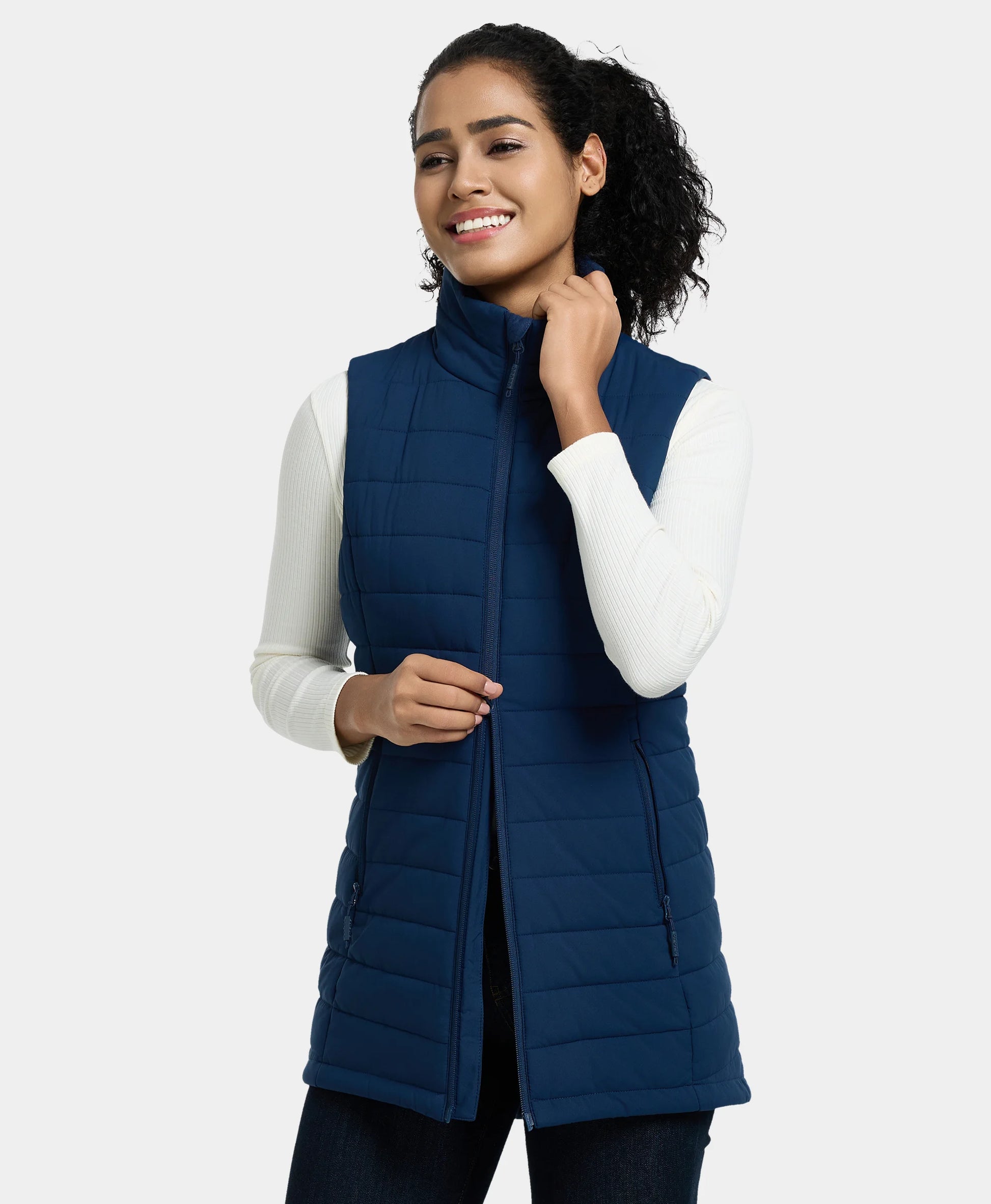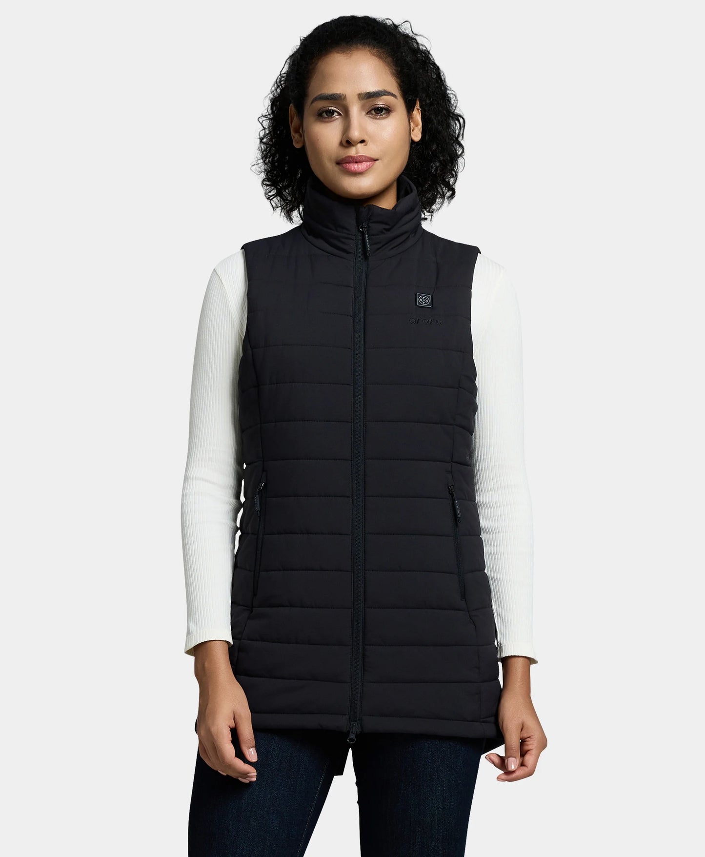 - Enjoy additional warmth and coverage with this slim-fit mid-thigh-length vest, perfect for cooler days.