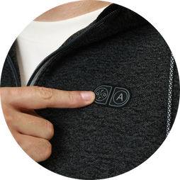 - Dual-control system with separate power buttons for individual control of the chest/back and arm heating zones