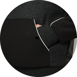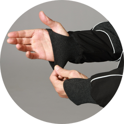 - Ribbed cuffs with thumb holes keep warmth in and cold out