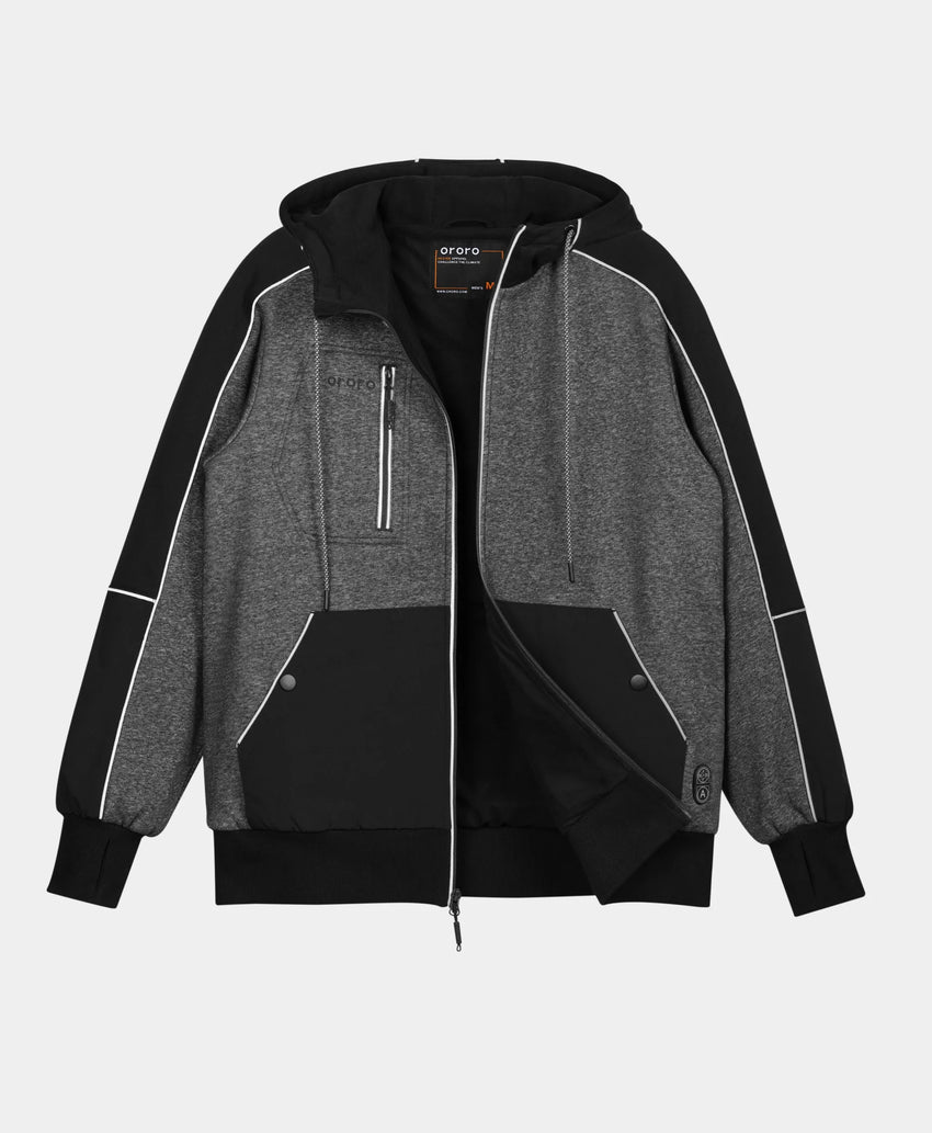 - The full-zip design allows easier layering and ventilation control with 5 heating zones.