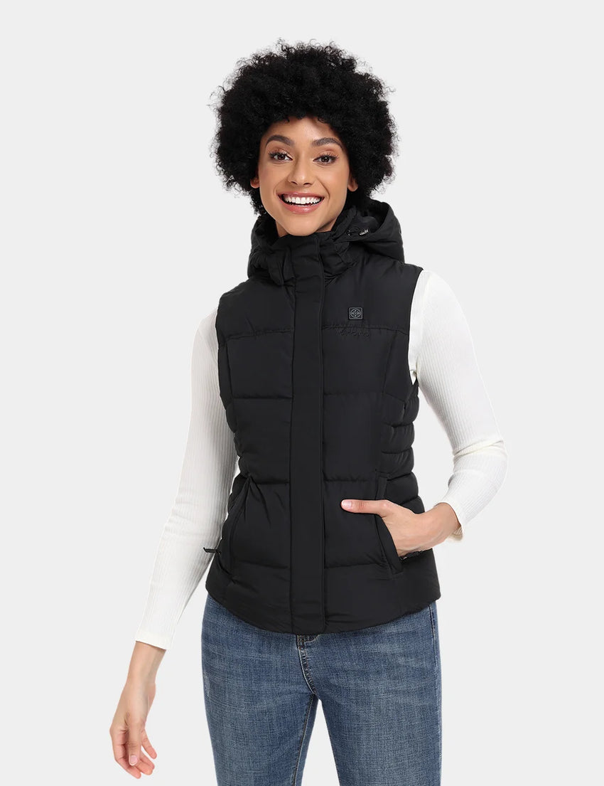 Women's Heated Cropped Puffer Down Gilet - Black / Red