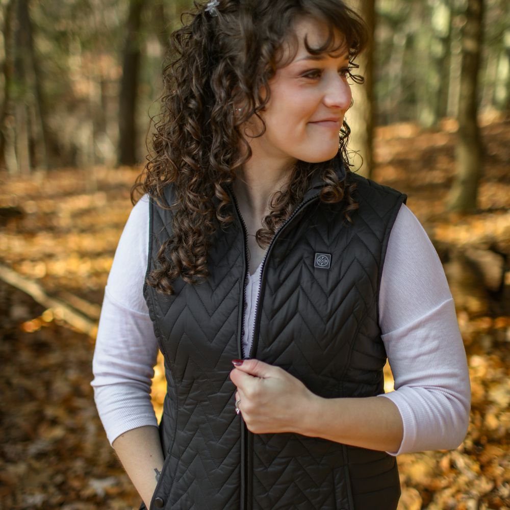 Women's Heated Chevron Quilted Gilet - Black / Purple