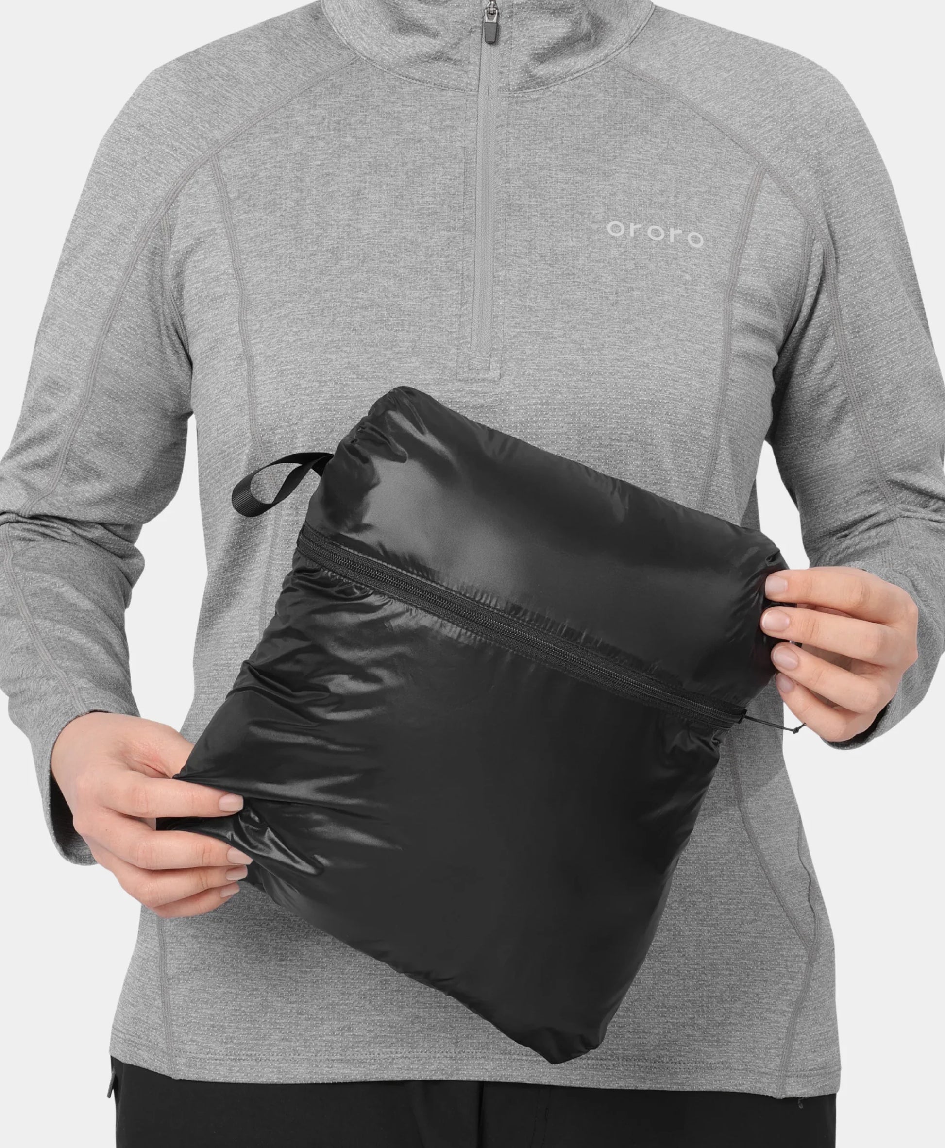 The inner pocket doubles as a storage pouch, allowing the entire jacket to be packed into a compact pillow for easy carrying. Perfect for air travel.