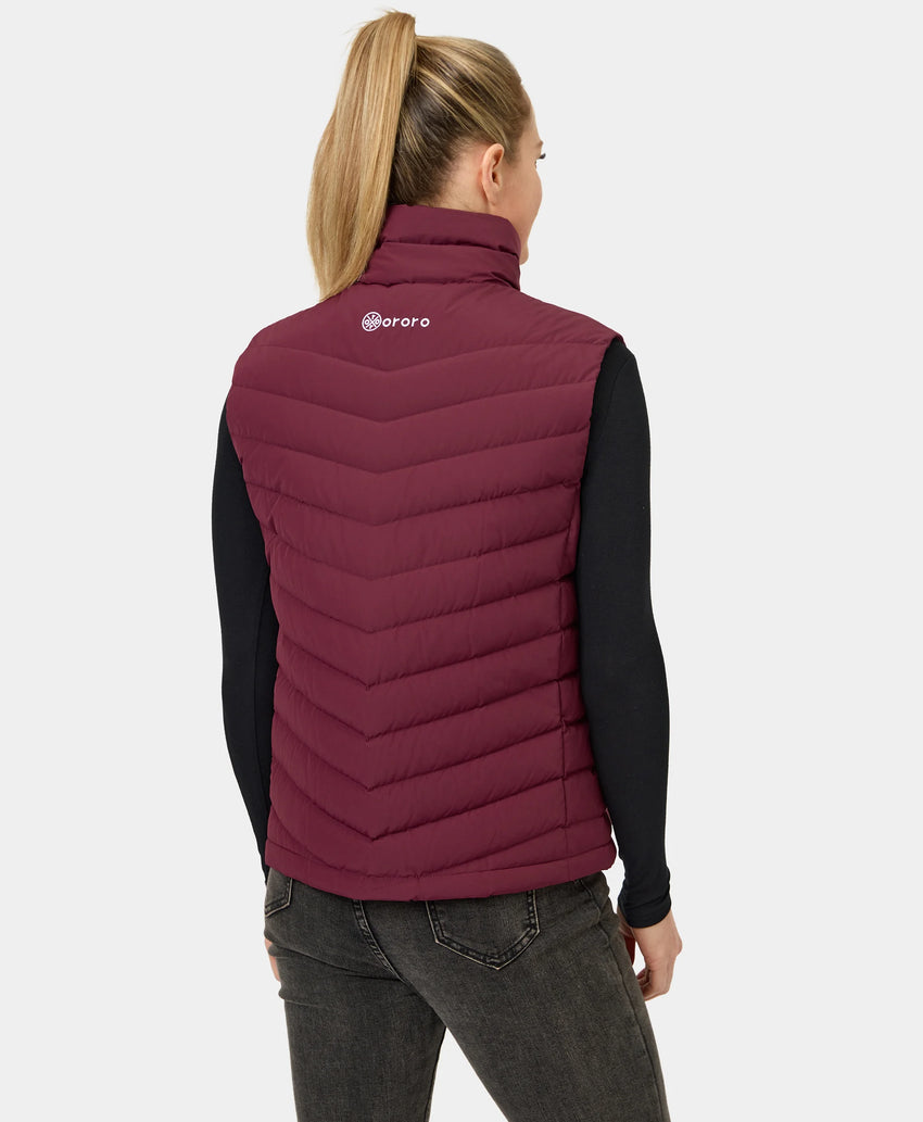 - The 800 fill power RDS (Responsible Down Standard) certified down has excellent warmth-to-weight ratio and is also the most lightweight heated down vest in the market. It’s perfect for either wearing alone or layering with your outer jacket.