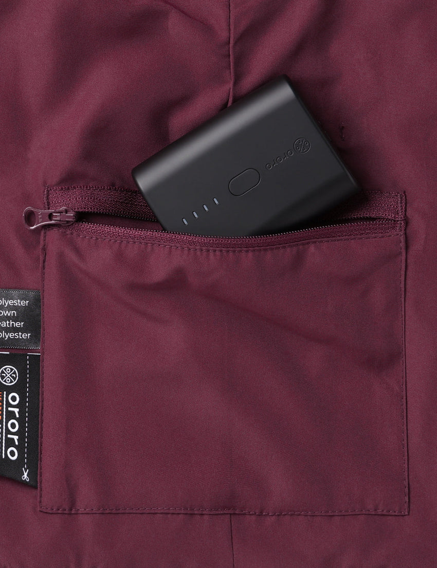 - 4 carbon fiber heating elements generate heat across core body areas (left & right pocket, collar, middle back).